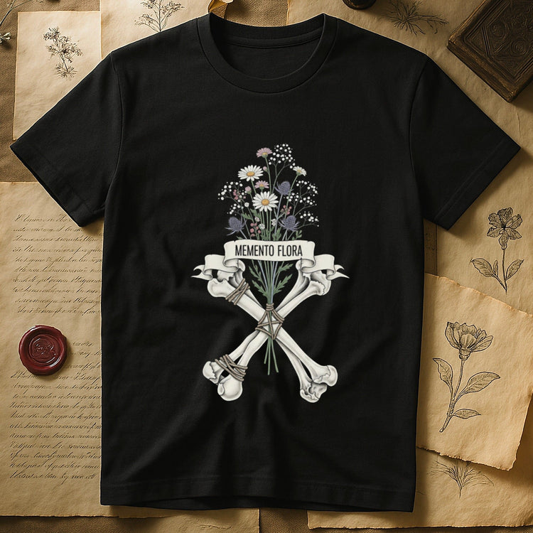 Bonebound Blooms T-Shirt - Skull & Floral Edgar Allan Poe Gothic Literature Tee for Book Lovers