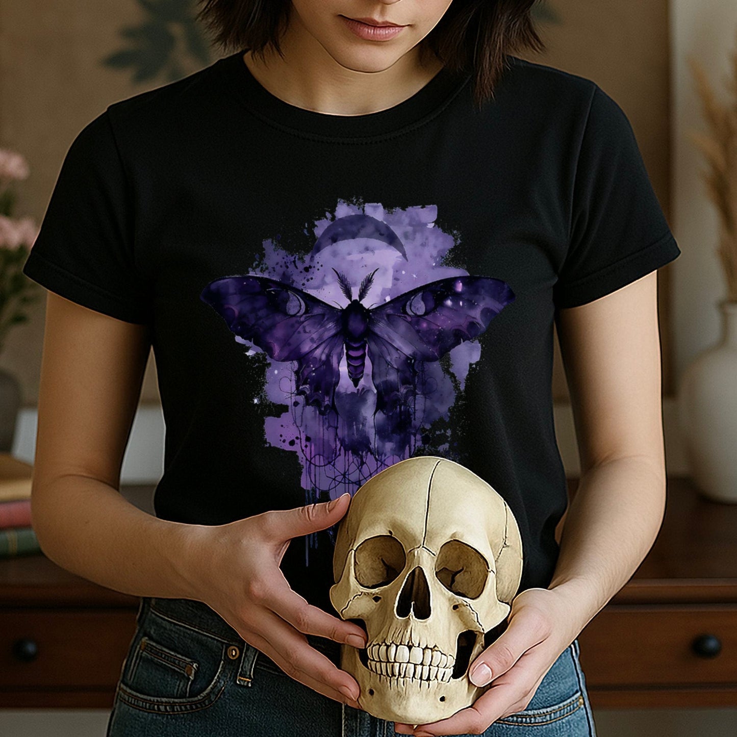 A luna moth wrapped in gothic mystery, blending celestial wonder with dark aesthetics.