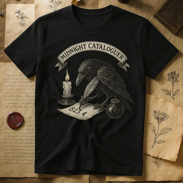 Midnight Cataloguer T-Shirt - Gothic Literary Graphic Tee for Dark Academia Fans